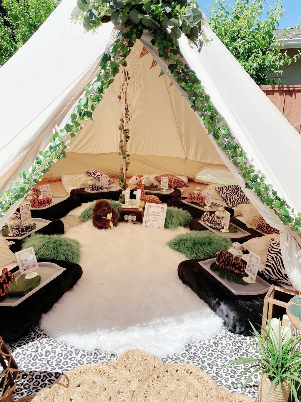 Our Bell Tent requires 22-24ft cleared area for staking)